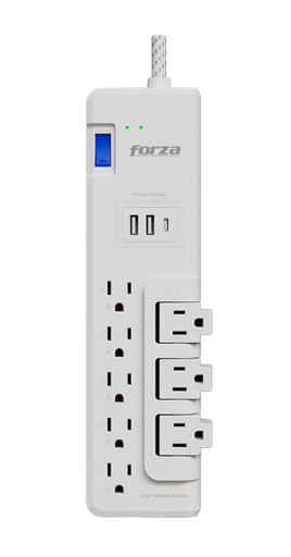 PROTECTOR TENSIÓN FORZA, 8 SALIDAS, 3-GIRATORIAS, x2 USB TIPO A, x1 USB TIPO C, 120V/240V, FSP-821RUSBCW