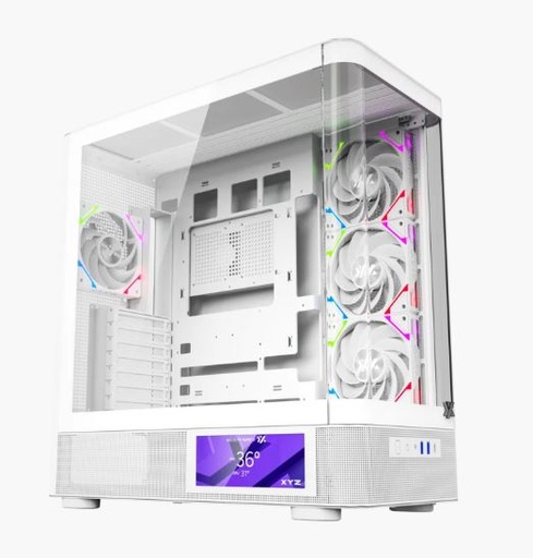 Case XYZ QUANTUM PRO, BLANCO. 6.2" Smart Display, Compatible ATX, Micro-ATX, and Mini-ITX , Graficas hasta 400 mm, and CPU coolers180 mm. Incluye 4 XYZ Vortex A-RGB fans con Inversion